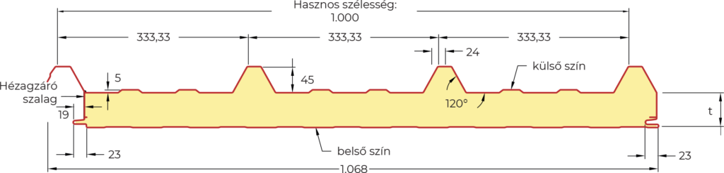 A tetőpanelek alsó fegyverzetének nútos kialakítása rendkívül pontos és szoros csatlakozást biztosít.